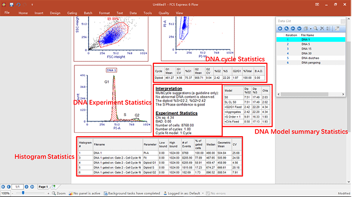 ? 演示內容:細胞周期數據的分析,關于細胞周期各個參數的調用,統計學圖表的建立