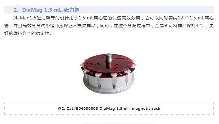 在分子實驗過程中,磁珠法核酸純化、磁珠法免疫沉淀實驗如:IP,Co-IP,ChIP等,都需要一個高效金屬磁力架,它不僅可以實現核酸和蛋白質的高效磁珠分離,還可以簡化實驗操作提高實驗效率。隨著磁珠在核酸或蛋白分離方面的應用普及,磁力架成為了實驗室的必備小工具。