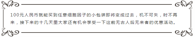 如何參加特惠活動,哈哈,我再叨叨最后一遍,第一步購買包裝任意因子第二步備注我們的活動單號AC—2017即可享受100元就能買到SIZE A的細胞因子,只需要100元。