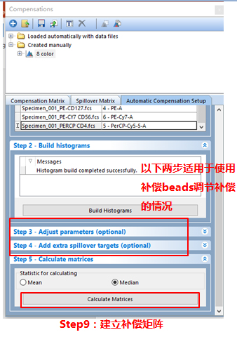 依次調(diào)整好各單管Control的Marker門的位置。此處不一一列舉。回到補償界面。此處的3、4適用于使用補償beads調(diào)節(jié)補償?shù)那闆r(由于本次數(shù)據(jù)為細(xì)胞,此處不詳細(xì)列出,如對此步驟感興趣,可咨詢小達君)