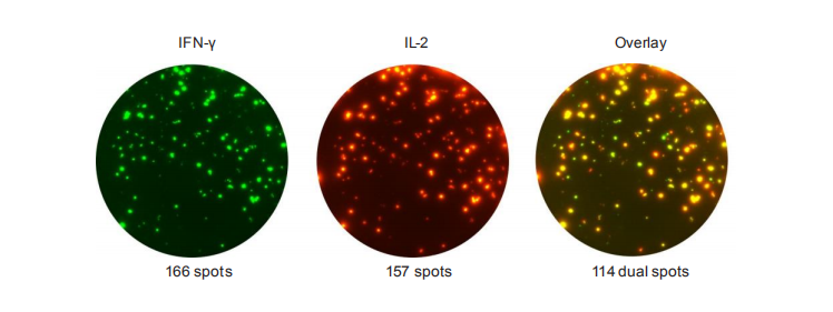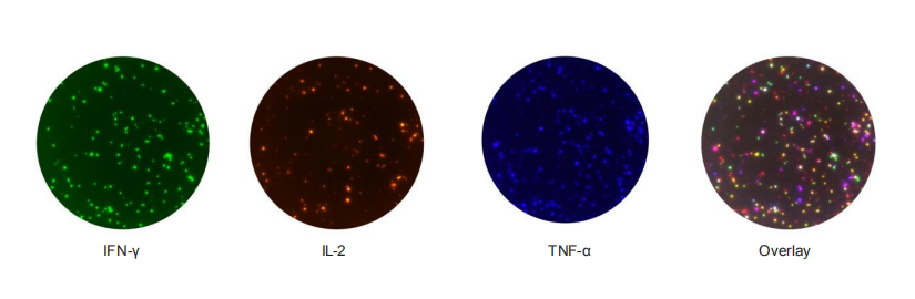 △三色FluoroSpot分析 能夠更容易的區(qū)分T細(xì)胞中不同的細(xì)胞因子