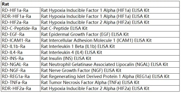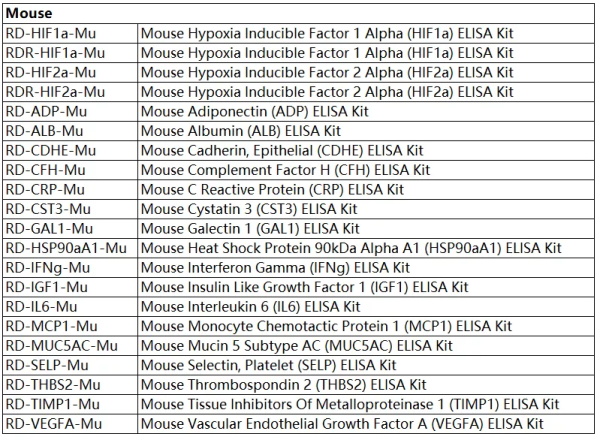 種屬多——人、小鼠、大鼠、雞、牛、豬、狗、山羊、綿羊、馬、豚鼠、斑馬魚、猴、兔等;