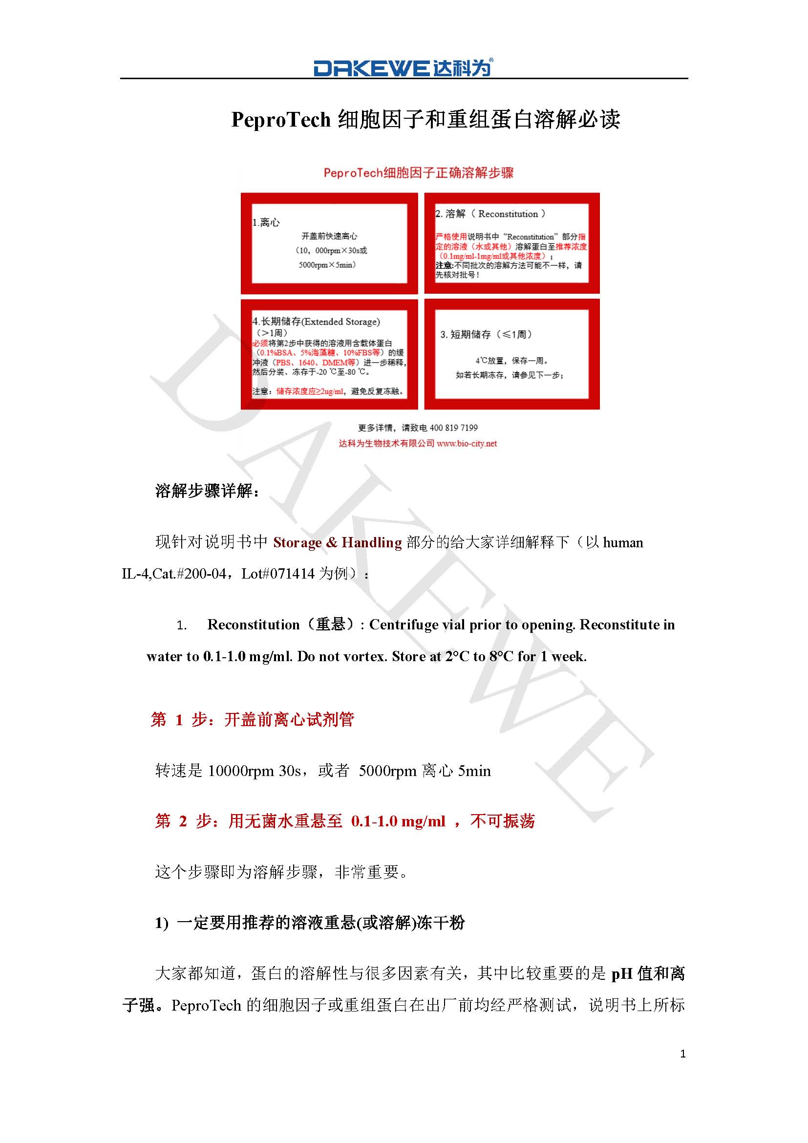 PeproTech細(xì)胞因子和重組蛋白溶解必讀