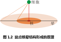同一類陽性細胞,受到相同的刺激,產生的斑點大小也不完全相同。這些斑點大小不一,但是如果把它們的直徑統計出來,這發現它們呈正態分布的,見圖1.3。
