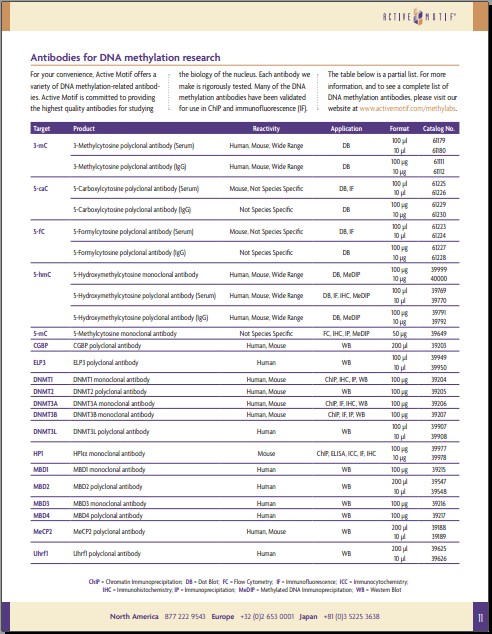 Active motif的DNA甲基化相關產品